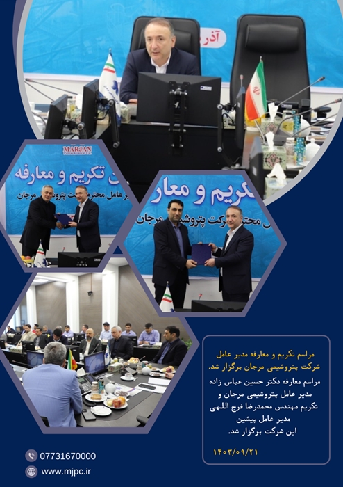 مراسم معارفه دکتر "حسین عباس زاده" مدیر عامل پتروشیمی مرجان و تکریم مهندس"محمدرضا فرج اللهی" مدیر عامل پیشین این شرکت برگزار شد.